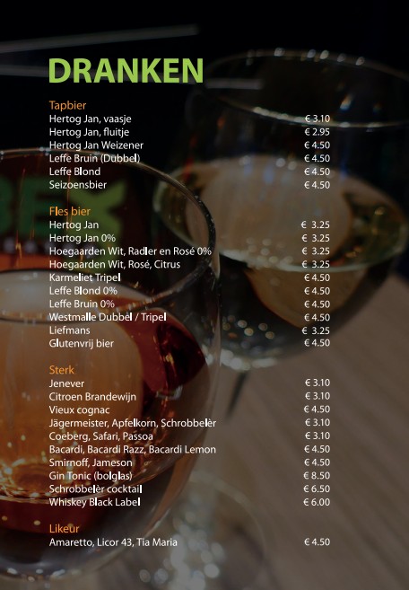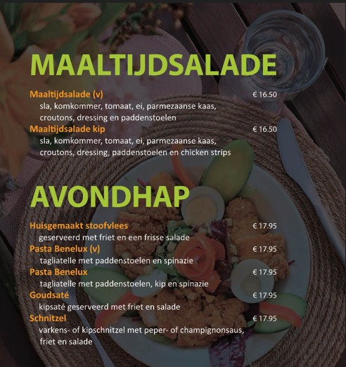 Proef onze kookkunsten. Geniet van onze lekkere avondhap en seizoensgerechten. Alle gerechten worden met liefde, verse ingrediënten en een unieke twist bereid.